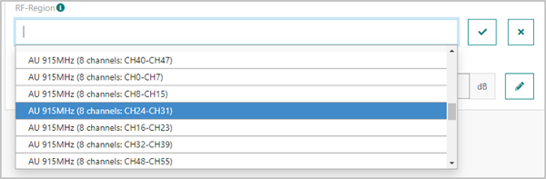 • Wählen Sie in der Dropdown-Liste Ihre neue Region aus. Sie können damit beginnen, Ihren Suchtext einzugeben, um Ihre gewünschte Konfiguration schnell zu finden. Weitere Informationen zur Auswahl der richtigen RF Region für Ihre Bereitstellung finden Sie unter RF Regions