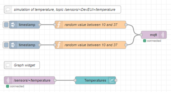 Sie können Zufallswerte injizieren, indem Sie auf die inject-Nodes klicken: