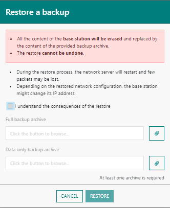 Stellen Sie den Inhalt des vollständigen Backup-Archivs auf diesem Gateway wieder her.