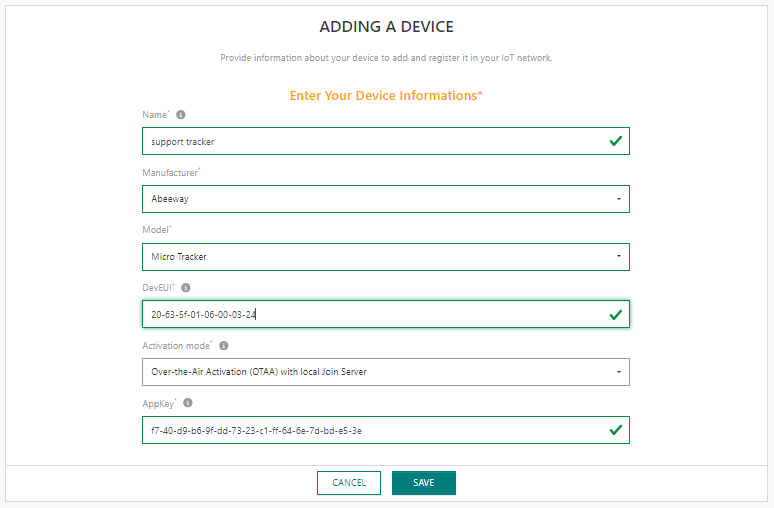 Sobald Sie den Hersteller und das Modell jedes Geräts wie in den folgenden Abschnitten beschrieben ausgewählt haben, ordnet ThingPark es automatisch dem richtigen driver zu, ohne dass Sie etwas tun müssen.