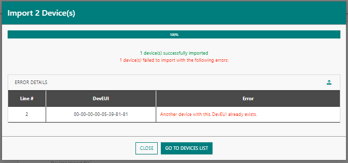 Sie müssen die fehlerhaften Zeilen korrigieren, bevor Sie die Datei erneut importieren. Beachten Sie, dass Sie nur die Geräte erneut importieren dürfen, die beim vorherigen Versuch nicht erfolgreich importiert wurden.