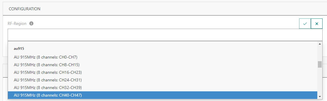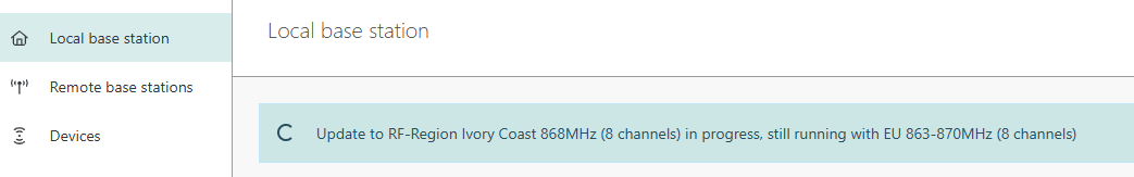 Die RF Region wird ursprünglich während Ihrer erstmaligen Anmeldung konfiguriert, aber Sie können sie jederzeit über die Benutzeroberfläche ändern. Dadurch wird die Konfiguration für alle Ihre Gateways (die lokalen und entfernten Basisstationen) geändert.