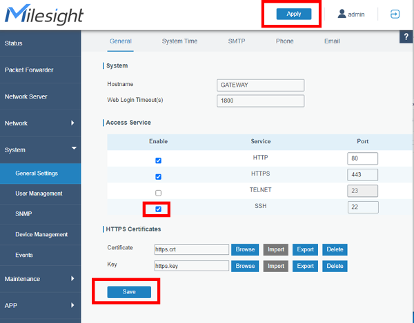 - Sie benötigen das Root-Passwort, standardmäßig ist es LoRaWAN@2018 (achten Sie auf die Groß- und Kleinschreibung).