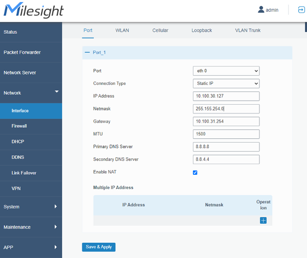 Ändern Sie im Abschnitt Port_1 auf statische IP oder DHCP.