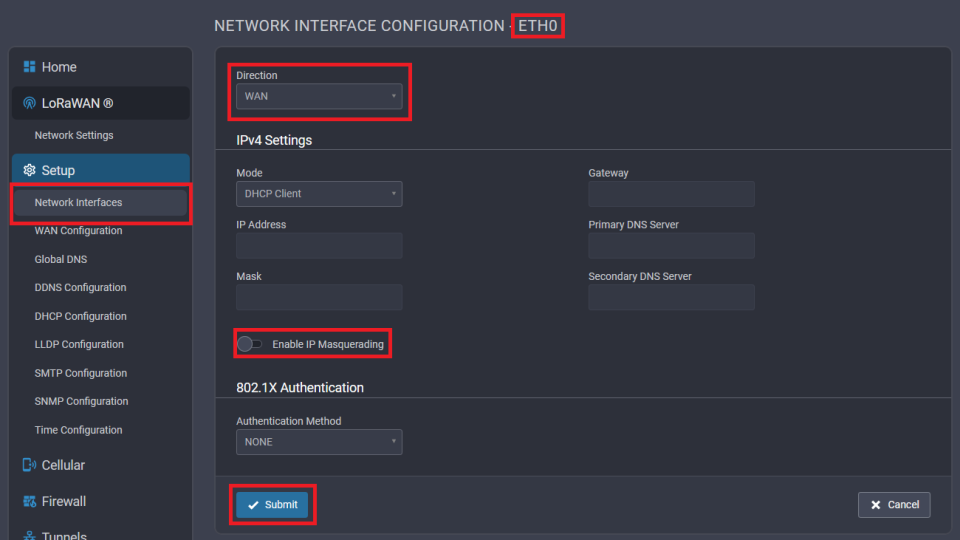 - Click on "Submit" button to apply the configuration.