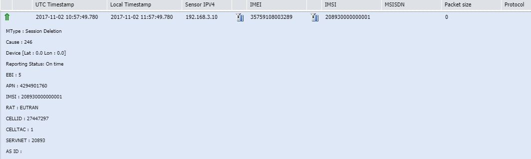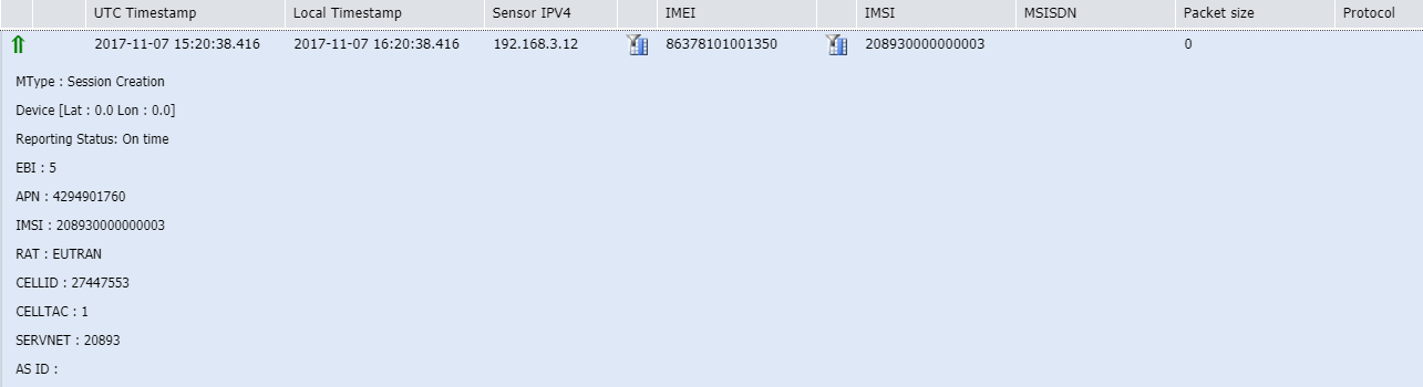 It is created in the last step of the LTE Attach procedure when the SGW of the operator's core network sends a session creation request to the MTC-LTE-GW within the EPC connector. Then, the EPC connector forwards it to the LRC within ThingPark Wireless.
