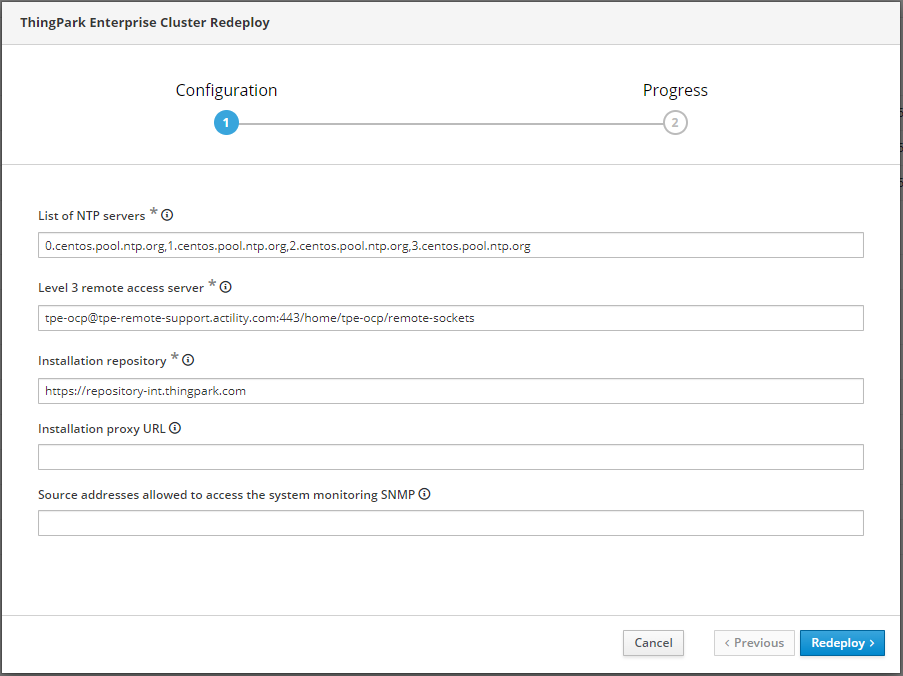 - La deuxième étape de l'assistant affiche la progression du redéploiement