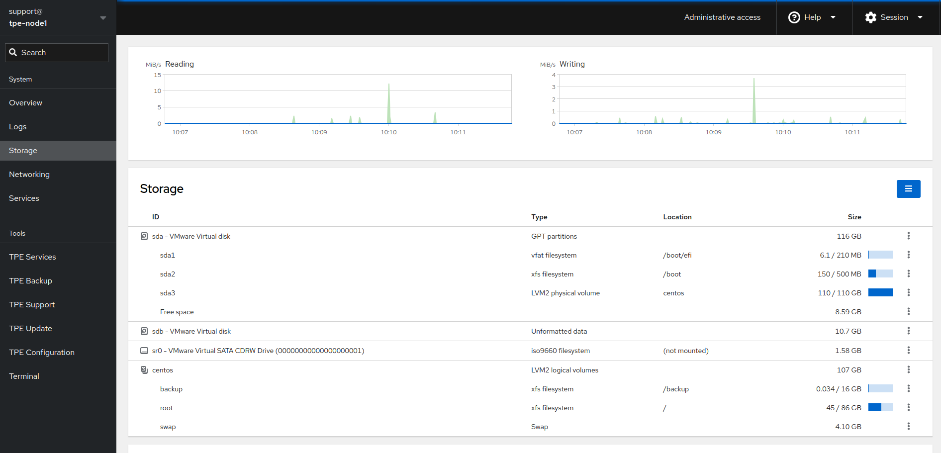 Allez au module Cockpit de stockage