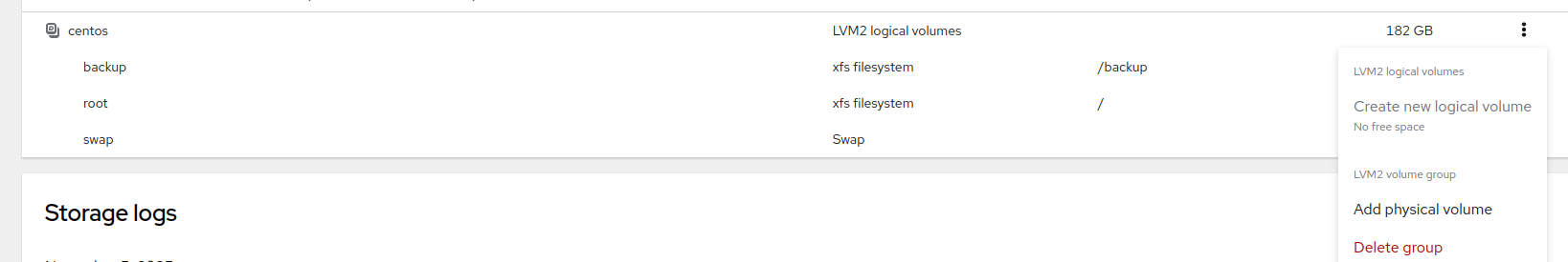 Si la liste des groupes de volumes est vide et que votre hôte TPE est un serveur virtuel Azure, augmentez la taille du disque attaché à la machine virtuelle et redémarrez. Le système de fichiers sera étendu automatiquement par votre fournisseur cloud. Vous pouvez alors ignorer les étapes restantes de la mise à jour de la taille du stockage pour ce nœud.