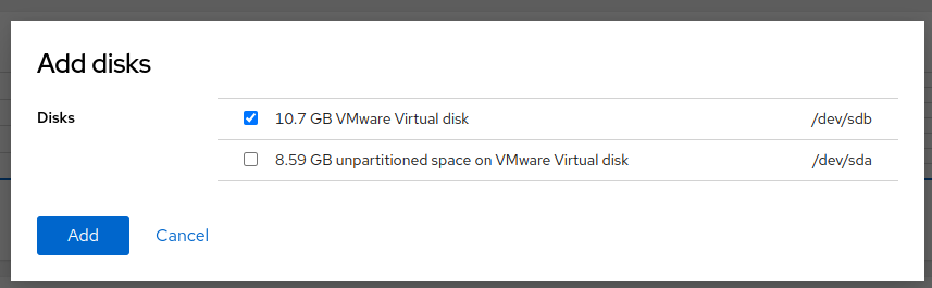 Ajoutez un nouveau disque à l'hôte TPE, et sélectionnez "Ajouter un volume physique" pour les groupes de volumes "centos"