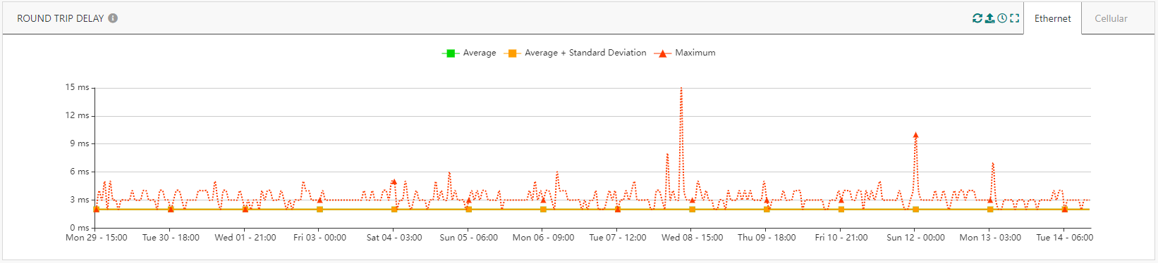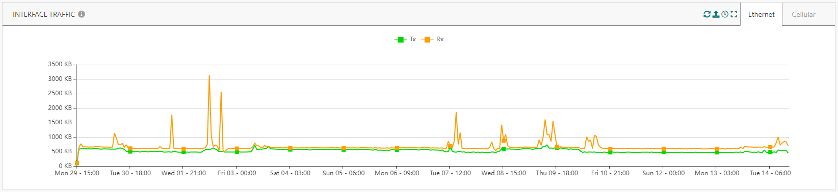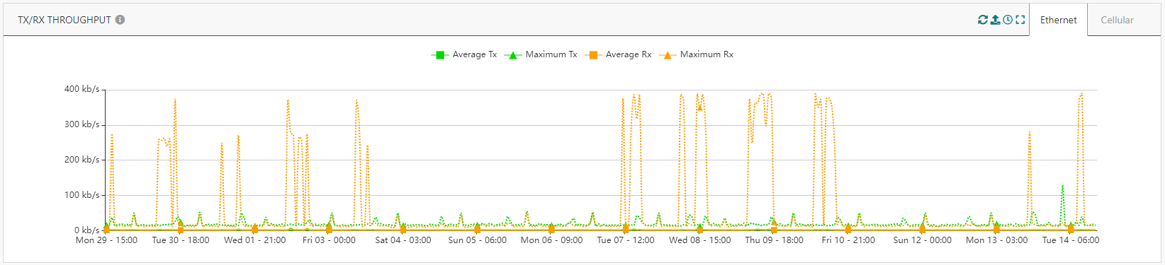 L'Historique du Trafic Radio affiche désormais le volume des trames uplink tardives (c.-à-d. en attente dans la passerelle en raison d'une déconnexion du backhaul)