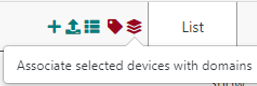 Associer des passerelles, capteurs et groupes multicast avec des domaines lors de l'approvisionnement initial (création unitaire ou importation en masse) ou en mettant à jour une ressource existante. Les ressources existantes peuvent être facilement associées à des domaines via les vues liste/carte, grâce au nouveau bouton "association domaine" en haut à droite de la liste/carte :