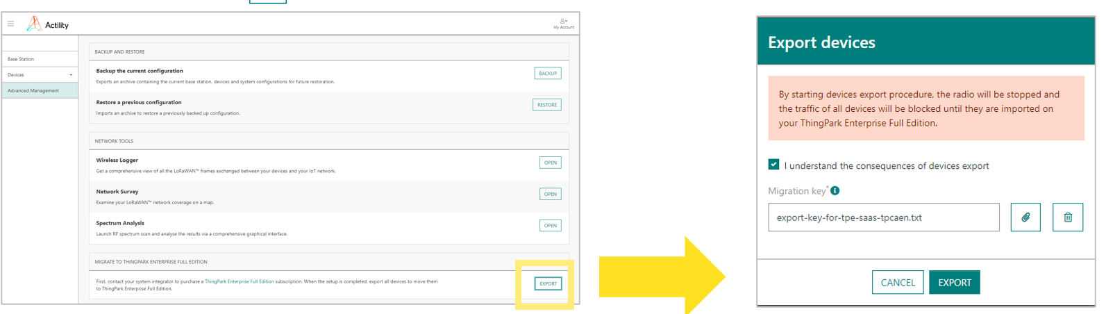 Pour en savoir plus sur cette procédure de migration et ses prérequis, consultez la documentation de ThingPark Enterprise All-in-one.