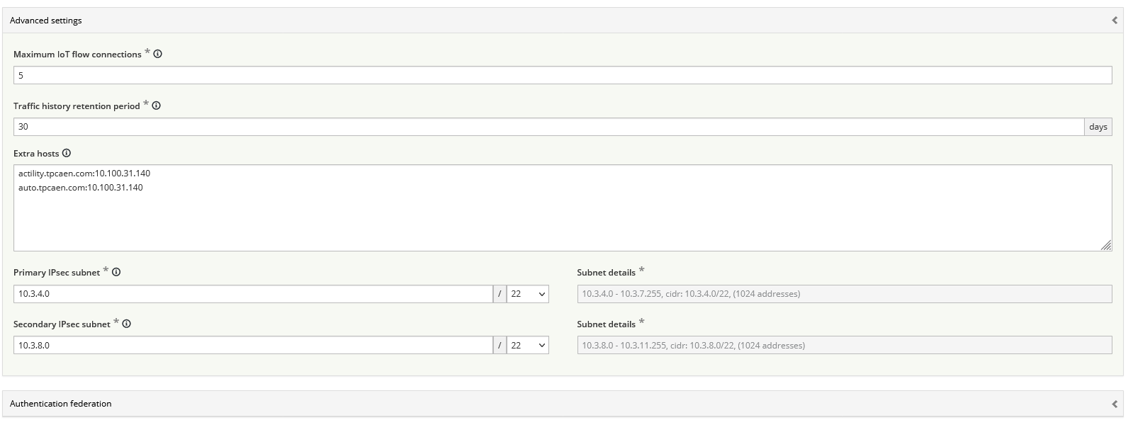 Changer le sous-réseau interne pour une plateforme en fonctionnement entraîne un changement des adresses IP LRC et FTP pour les passerelles utilisant IPSec. Par conséquent, les gestionnaires de base de station doivent reconfigurer les adresses IP LRC et FTP pour ces passerelles, comme décrit dans Configurer les points de terminaison du réseau central. Néanmoins, le service de mise en service de l'infrastructure de ThingPark (ICS) peut être utilisé pour effectuer cette reconfiguration sans interruption.