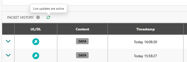 Le widget "Last 10 packets", disponible sur la page détaillée de chaque Capteur, est significativement amélioré dans la version 8.1. Il s'appelle désormais Packet History.