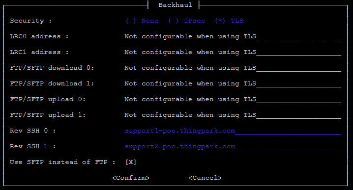 - Utilisez l'adresse IP publique (Network Server IP) configurée dans Cockpit pour configurer l'adresse IP des points d'accès LRC/FTP/SSH inversé selon votre plan d'adressage.