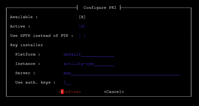 astuceAvant de quitter cet écran, vous pouvez vérifier directement que les champs du Key Installer sont configurés correctement comme décrit dans Configuration du PKI.