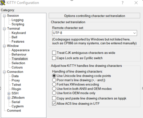 Pour les utilisateurs de Putty, vous devez configurer l'option "Autoriser le dessin de lignes ACS en UTF" pour améliorer l'affichage.