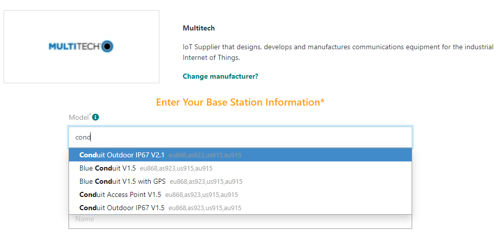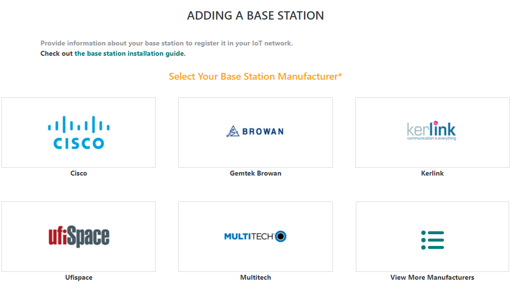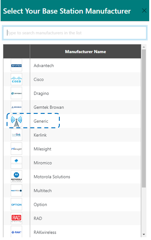 Pour les passerelles utilisant le Packet forwarder Basics Station, si votre fabricant n'est pas listé, utilisez le fabricant Générique.