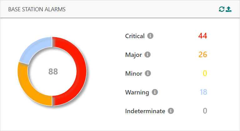 La distribution des alarmes de passerelle par gravité fournit un aperçu des dysfonctionnements actuellement détectés sur votre flotte de passerelles. Les alarmes reconnues par les administrateurs ne sont pas prises en compte dans cette répartition. Consultez Visualisation de la liste des alarmes de passerelle pour plus d'informations sur l'acquittement des alarmes.