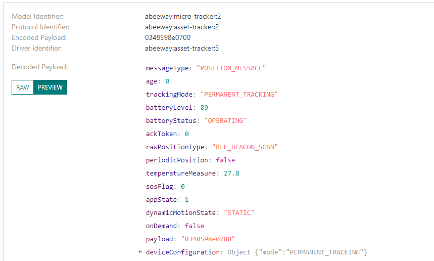 noteLe décodage est déclenché si le paquet contient une payload et si le capteur est associé à un identifiant de protocole issu du modèle de capteur (intégré) ou à un identifiant de protocole d'un driver personnalisé créé dans l'interface ThingPark X IoT Flow. Remarque : les profils de capteurs génériques (utilisant le fabricant LoRaWAN®) ne sont associés à aucun driver système ; par conséquent, ThingPark ne peut pas décoder les payloads applicatives des capteurs associés à des profils génériques, sauf si vous les associez à un driver de payload personnalisé.