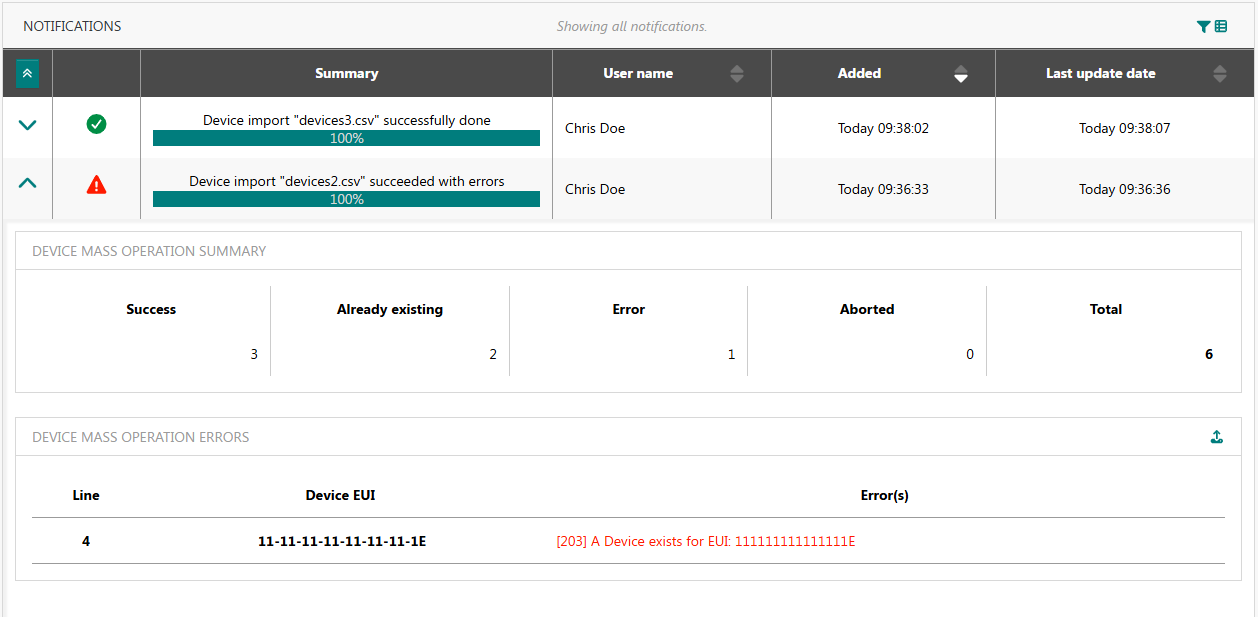 Déjà existant : nombre d’ajouts de capteurs qui ont été ignorés parce qu’ils existent déjà dans votre abonnement.