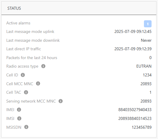 • Les Message mode payloads affichent le volume agrégé des payloads applicatifs en mode message (uplink/downlink), en octets.