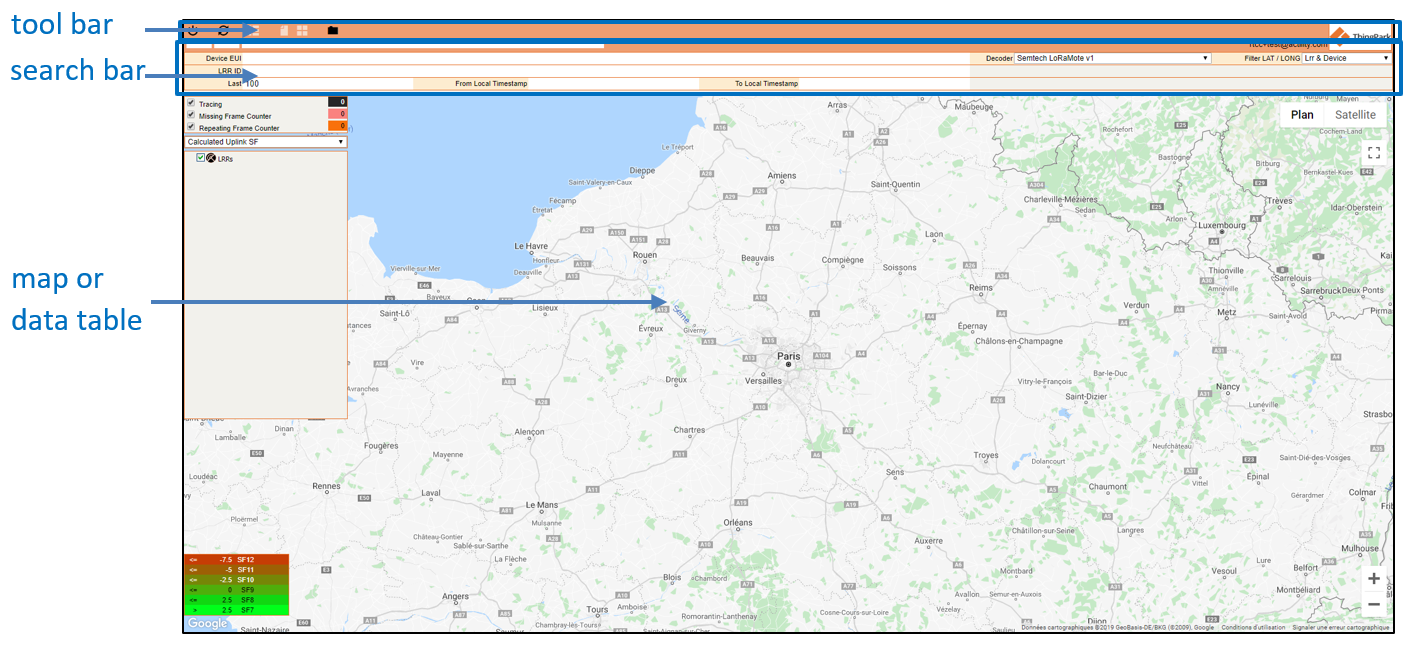 Pour que les données du capteur apparaissent sur la carte ou dans le tableau de données, la barre de recherche doit d'abord être remplie.