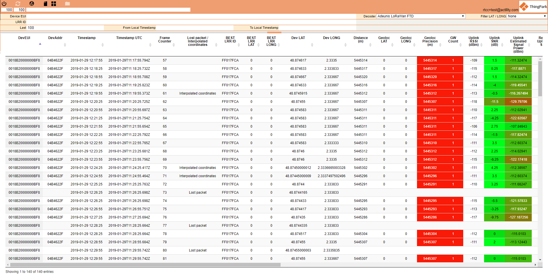 • Précision de géolocalisation : Précision du solveur de géolocalisation LoRa.